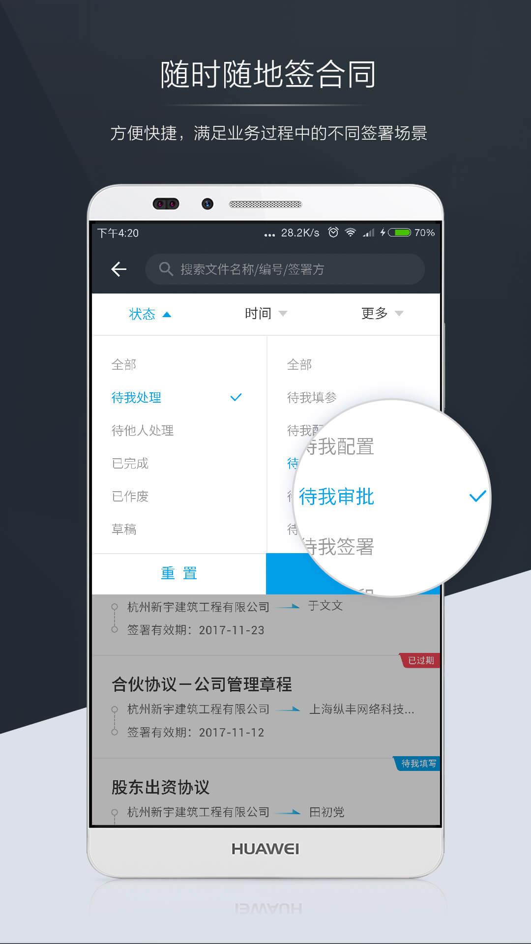 契约锁app是一款由上海亘岩网络科技有限公司开发打造的电子合同签署软件,这款软件解决了各种企业、个人、机构合同的存储和管理问题,电子合同同样具有法律效应,管理更加方便。