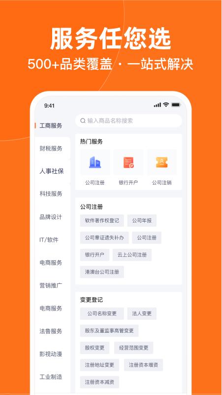 【工商注册】包括:公司注册、社保人事、创业套餐、公司变更等。无需为跑手续烦心,专业团队为您服务。