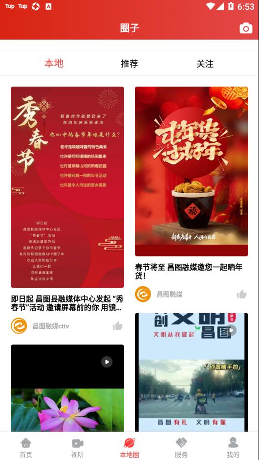 昌图融媒app是专为昌图县制作的融媒体移动平台,平台拥有新闻资讯,生活服务,视听,本地圈等等功能内容,可以帮助更好的引导及服务昌图县。
