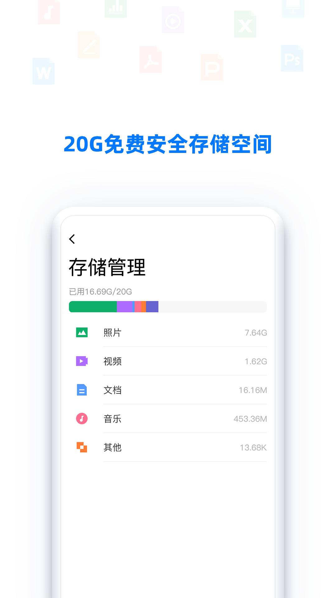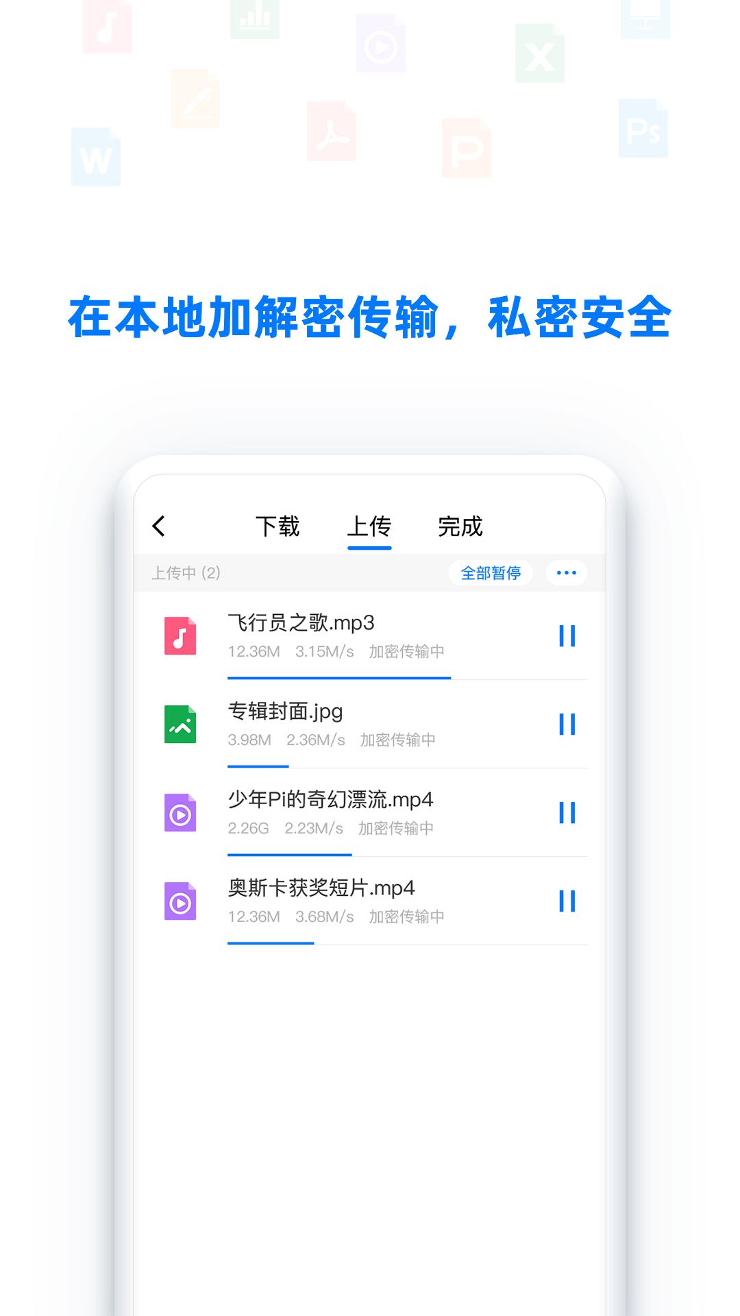 2、安全保护,对用户的所有存储文件都会进行加密,让你放心文件安全。