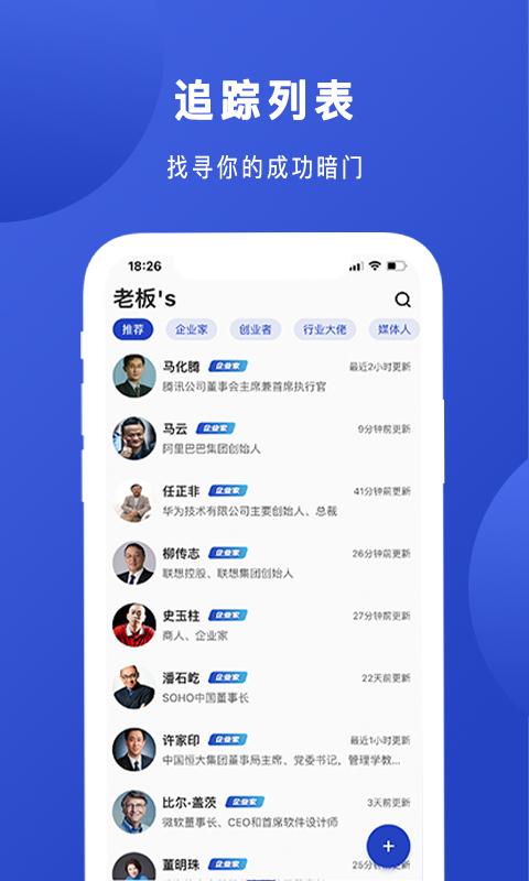 【Boss合集】收录各领域企业家 / 投资人 / 创业者 / 媒体人 / 专业大牛等国内外知名大佬超500+,供您自由筛选,一键追踪!
