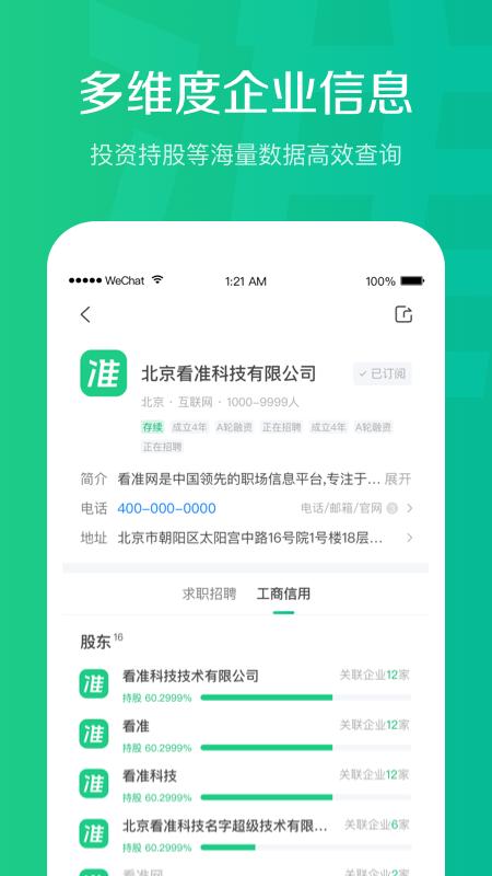 看准app是一款由北京华品博睿网络技术有限公司开发打造的求职招聘app,丰富的招聘资源数据,和海量企业信息帮助企业和求职者互相了解,找到最合适的对象。另外各种求职资讯文章能帮助求职者提升求职技能。