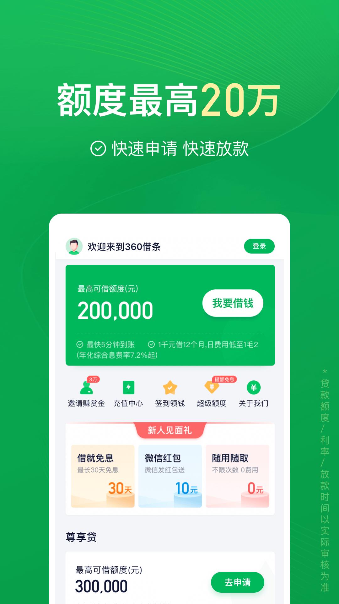 360借条app下载安装是360数科旗下打造的信贷平台,上市品牌,安全可靠,额度最高可贷20万,最长可免30天利息,操作十分简单,仅需三步,感兴趣的话赶紧来下载试试看吧