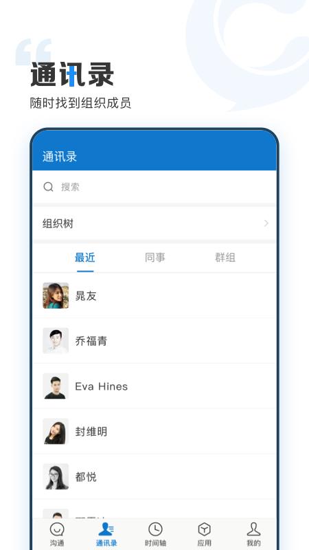 云上协同包含“沟通”、 “时间轴”、“通讯录”、“应用”、“我”五个模块,集成了办公中的信息沟通、语音沟通、视频沟通、会议、任务安排和管理、组织中的内部应用等功能,完全可以满足远程协同办公的各项需求。