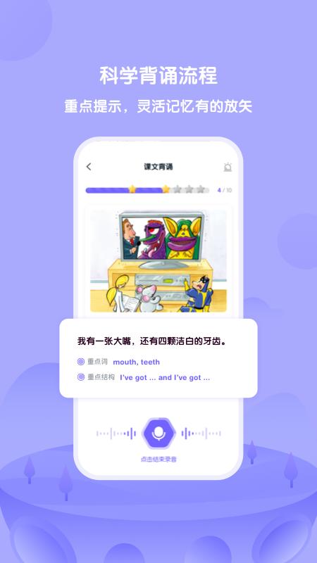 落实课标重点单词,采用音、义、形、用四位一体教学法,科学复现,轻松有效背单词。