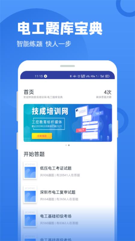 电工考试题库是技成培训网旗下主打的电工考证必备题库,专为国内专业的电气自动化人士量身打造的免费刷题APP,考题涵盖了初级电工、中级电工、高级电工、低压电工、电工复审等精选题库。其中低压电工为历年真题题库。