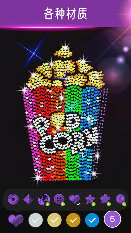钻石涂涂乐的自由创作模式来啦!运用各种材质的亮片随意创作吧!