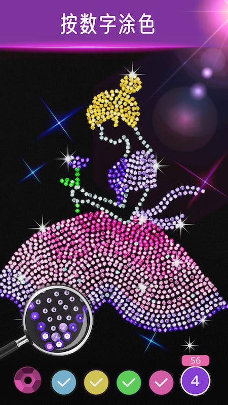 5、有炫酷的的亮色系列,利用数字填色人人都能完好的钻石点缀游戏,多种图案任你加色;