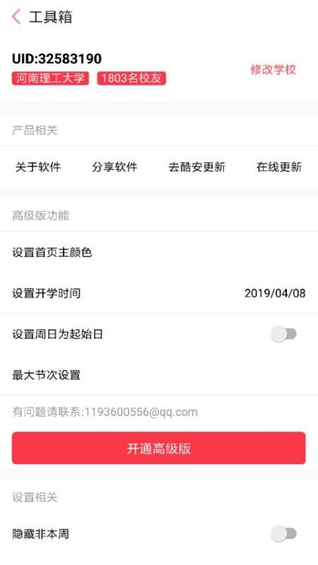 - 智能的课表设计,让单双周,跳周的课表不再成为你的困扰。