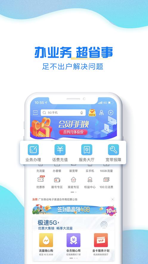 无论您身在何处,随时打开“广东移动”客户端,都可享有专属服务。