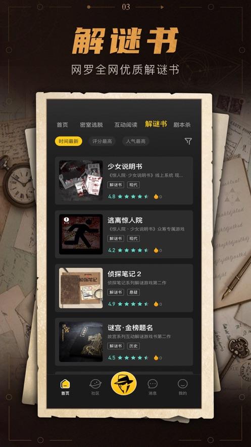 谜案馆app是一款文字冒险解谜游戏平台,平台拥有丰富的资源,趣味烧脑,还拥有互动社区,游戏创作等等,喜欢的朋友欢迎前来下载使用。