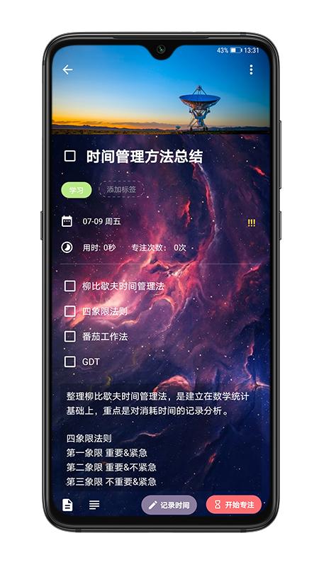2、能够随着时间的流动来逐步的完成你的任务规划,帮助你有效的进行时间的管理。