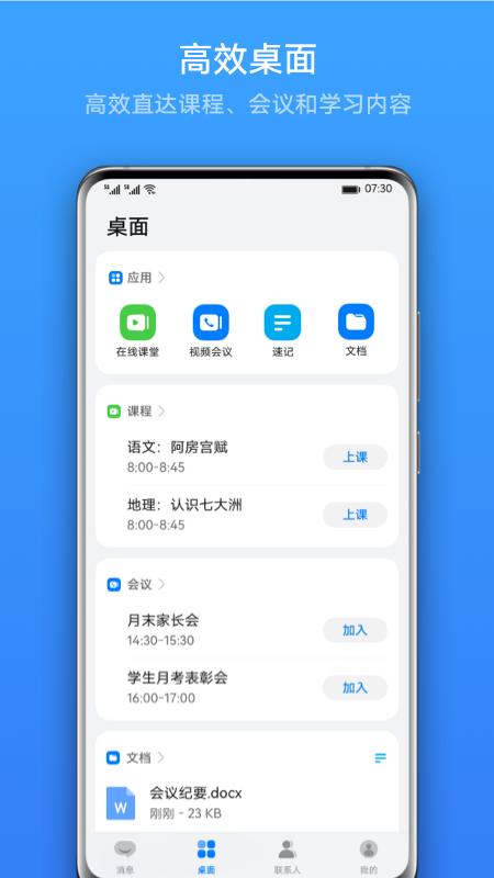 - 随身会议:随时随地发起多人音频/视频会议,支持跨平台、多终端等多种方式快速创会或入会;