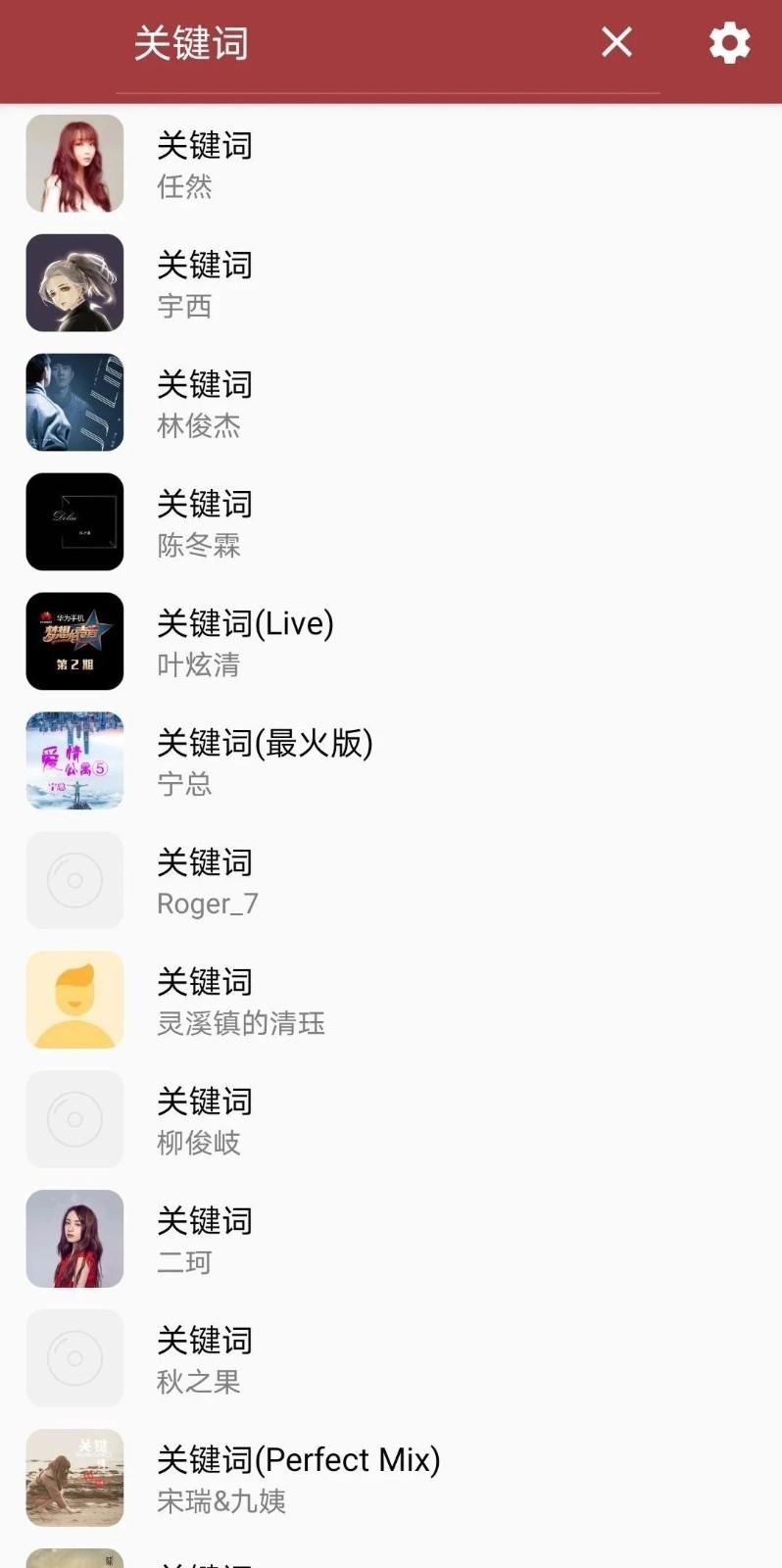 2.右上角是搜索图标,点开后可以直接搜歌曲名,也可以直接搜歌手名字,它会将网络上有关这首歌的所有资源展示出来;
