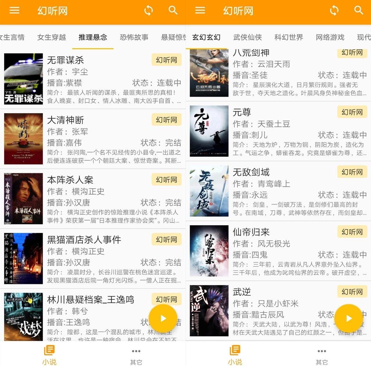 2.类目清晰,首页上展现的是以网络小说为主,UI设计确实非常像一个小说软件,但是除了网文之外,出版的文学作品一样可以听;