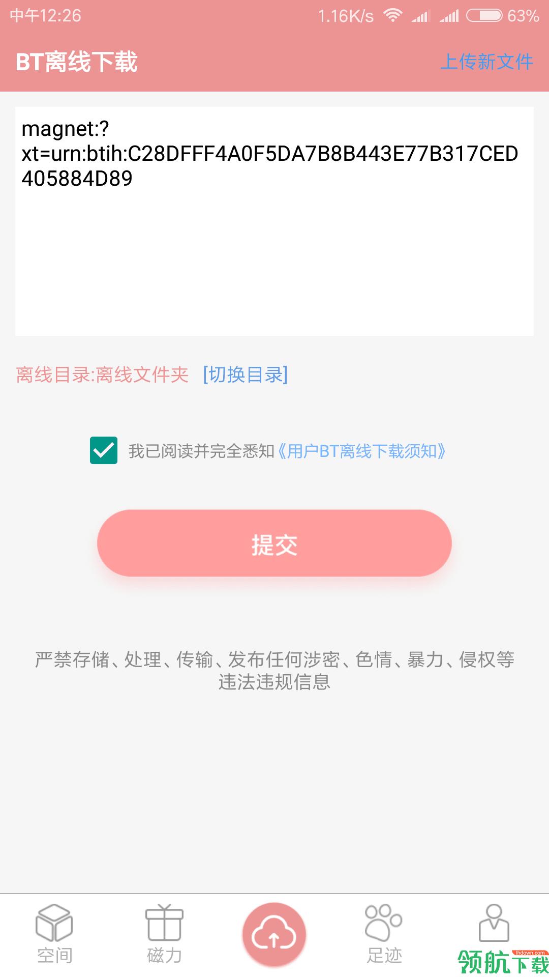 1、磁力云可以自动捕捉了磁力链接 ,这时只需要点击“提交”,就能把视频转存进来了;