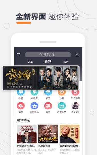 1、分类里面也是有着各种的分类小说、相声、曲艺等等频道,不怕你找不到就怕你不用!