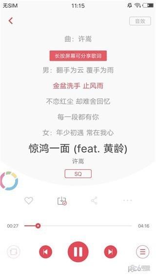 3、双排列表显示标准、高品、无损音质,大家可以自由选择,部分音乐还支持Hi-Res原音!