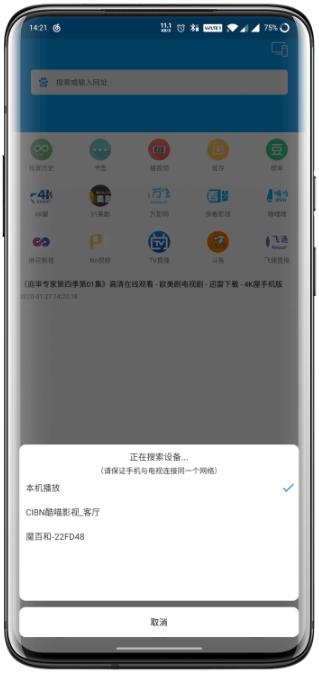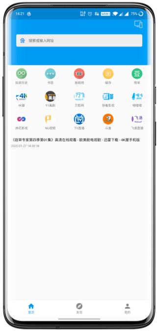 1、进入主页面,页面包含了一些导航网站,这些网站的视频基本上都能在线观看、离线缓存、在线投屏。