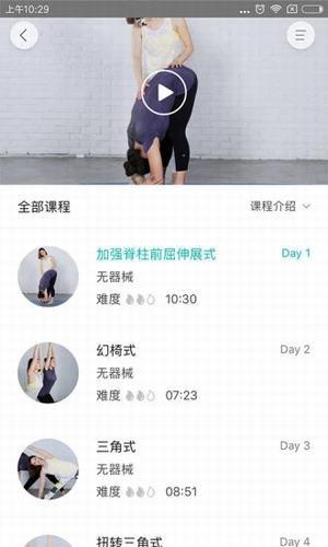 2、软件视频教学内容详细,都是专业老师精心编排的动作,让你享受专业瑜伽!