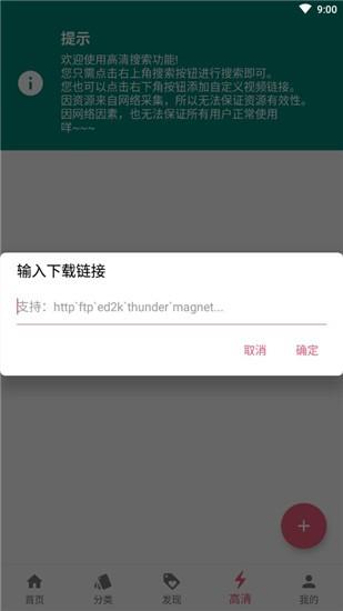 3、软件还支持在线磁力播放,点击右下角的“+”号,输入磁力链即可在线观看。而且支持http、ftp、ed2、 thunder、magnet,简直是看片神器啊,哪怕只有这一点也是是很棒的磁链播放器了!有了资源猫,似乎迅雷也能放一边了。