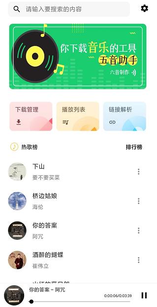 在五音助手中打开链接解析,复制刚才的链接。它就会自动识别歌单内容。然后选择歌单里需要下载的音乐,选择下载选中即可。