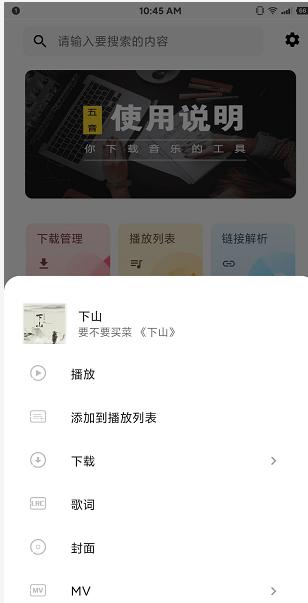 2.点击下方音乐的竖着的三个点,就可以出现诸多功能,播放,下载,歌词,封面,MV。当然最重要的就是下载功能了。