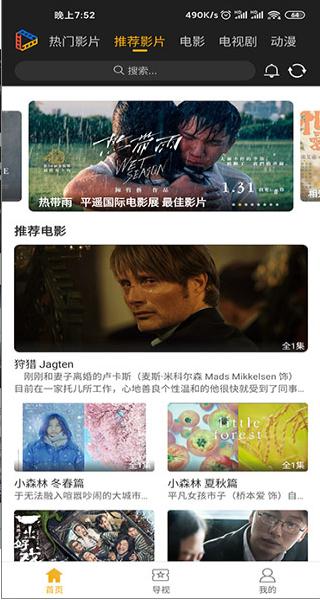 1、首页就是各种影视剧的推荐,有热门、推荐、电影、 电视剧、动漫这几个分类。