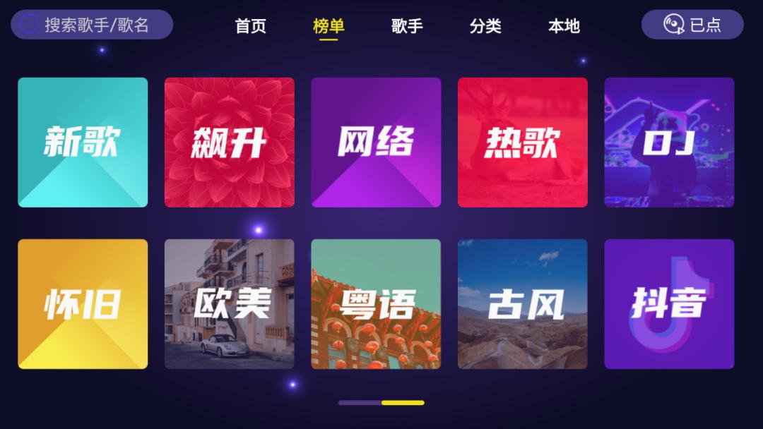 2.热歌、新歌、欧美、DJ、网络、抖音、飙升、怀旧、古风这些都是已经分类好了的,不知道唱什么歌可以点进来看看,而且这款家庭KTV同步更新音乐的哟。