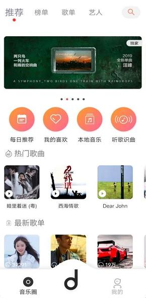 4.热门推荐排行榜,聚合知名音乐平台资源,全部任性听,能让用户根据自己的播放习惯进行选择;