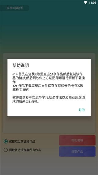 这个软件操作也很简单,只需几个步骤就可以完成歌曲下载,不仅可以下载歌曲也可以下载mv,而软件支持分享歌曲,复制外链,打破k歌限制,支持下载任何用户作品,无任何限制,很有趣。