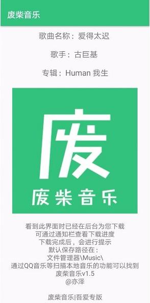 废柴音乐是一款体积轻巧的音乐下载器。现在,挺多软件如雨后春笋般出现,也有很多软件失效而倒下,最近这些音乐下载的软件就是这样,大家也知道,现在任何一个客户端,只要你想听一下最新的音乐,或许没什么大问题,但是要下载却有了很多限制,如版权收费等,或是得升级成为会员才能享受免费下或是听的权利。所以若是有这样的一款软件,可以让你免费下载所有的音乐,而且还支持无损等,既方便,又让你省下不少会员费,何乐而不为呢?