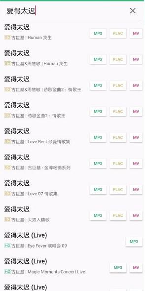 4.无论是无损还是MV,统统都能帮你找到,下载很是简单,点击你想要的音质即可;