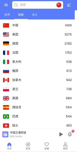 2.软件内容覆盖了世界各地电台的资源,我们还可以根据语言、类型、国家进行精细筛选;