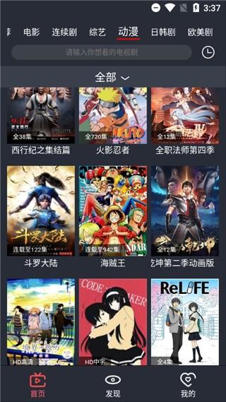 4.在首页顶部除了有推荐,还有电影,连续剧,综艺,动漫,日韩剧等几大版块的影视资源内容;