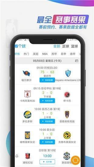 1.软件首页是最近热门赛事的前瞻与回顾,你可以在这里看到足球、篮球的相关内容;