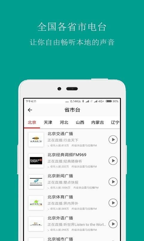 4.除了音频资源,这里也支持广播收听,我们可以在这里实时听到广播的消息;