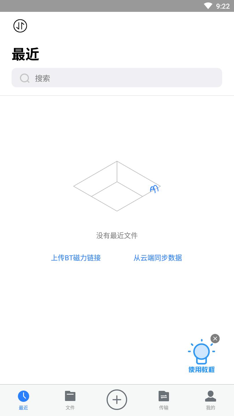 2、登录之后就可以自由使用了。点击下方菜单栏中央的加号就可以上传BT文件或者磁力链接。
