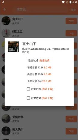 2.软件中的所有歌曲都支持下载,最高支持下载无损音质,并且还同时支持下载歌曲封面和歌词;