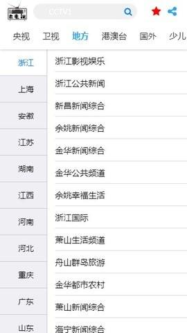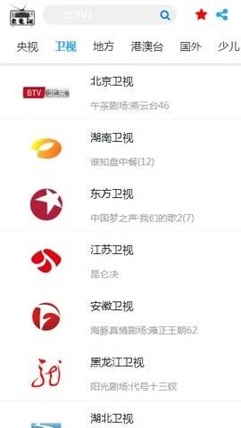 3.每个分类下都有很多频道,卫视就包含北京、湖南、东方、江苏卫视等;
