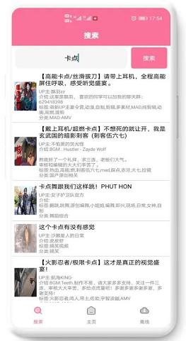 1.在软件的“搜索”这个页面,我们可以直接输入关键词搜索自己想看的视频;