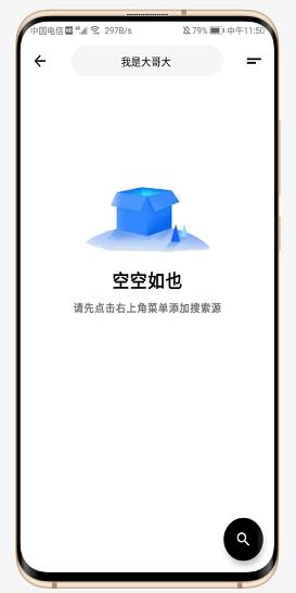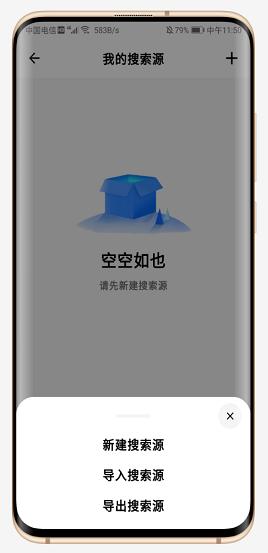 2.点击右上角的“+”,选择导入搜索源,导入内容后,再点击确定即可正常使用;