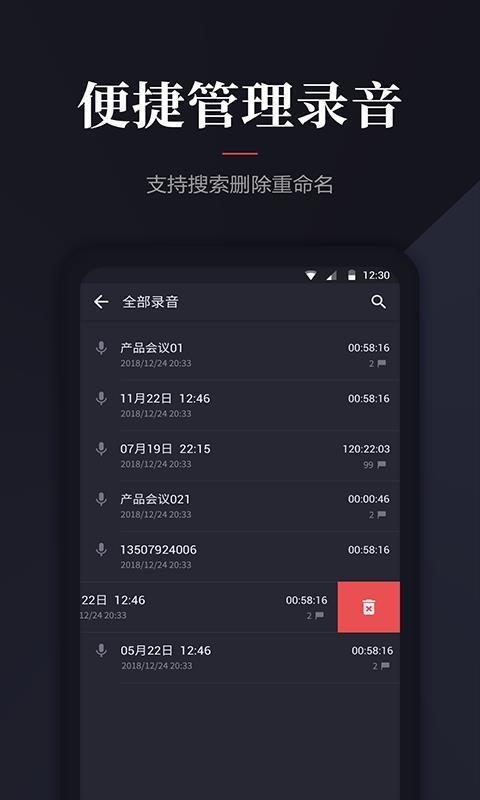 这个软件提供了一个功能强大的记录仪,可以快速记录各种声音信息,让用户得到更多的帮助。可以对用户的录音进行实时管理,查看录音列表,使您能够清晰地了解各种录音信息。