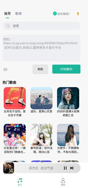 4.支持在线解析大牌音乐平台的歌曲,无需花费即可畅听QQ、网易云音乐等;