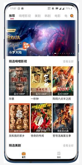 2.软件没有专门的影片分类和榜单推荐,而是在首页划分为美剧、韩剧、动漫等12个影视节目;