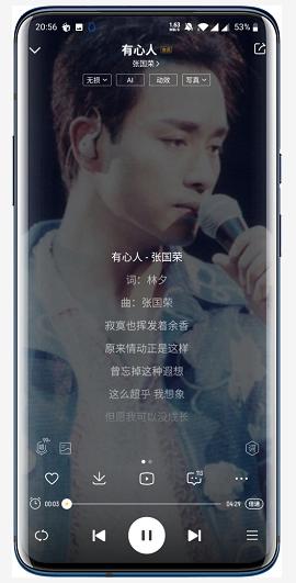2.打开软件直接就是音乐播放的界面,这个界面还有循环的无声视频;