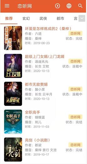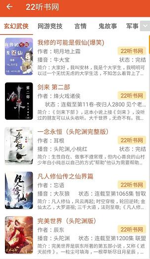 3.随便点击一个站源,里面有详细的分类:武侠、科幻、网游、现代、言情都有;