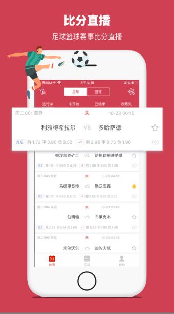 为用户提供最新的独家直播比分,中场上比分、赔率动态,百名嘴大咖评论员在这里为你进行分析解说,进球提醒比央视直播还快。