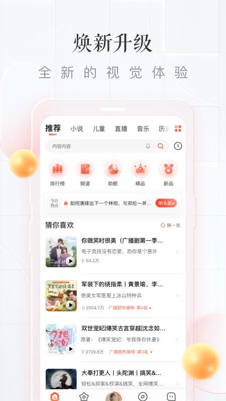 喜马拉雅听书为用户提供了了各种的有声读物,你可以在里面去收听各种电台,为用户提供了许多不同的电台频道,提供了详细的电台分类,有搞笑类型的知识文学类型的。除此之外还提供了听书的功能,各种的书籍都可以通过它来直接读取,用户可以使用它的搜索功能来查找自己需要的书籍来听,非常方便。