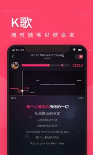 3、手机就能直接尽情K歌,随时随地以歌会友,新老歌曲、情歌对唱、英文外文歌等百万歌曲任你唱。